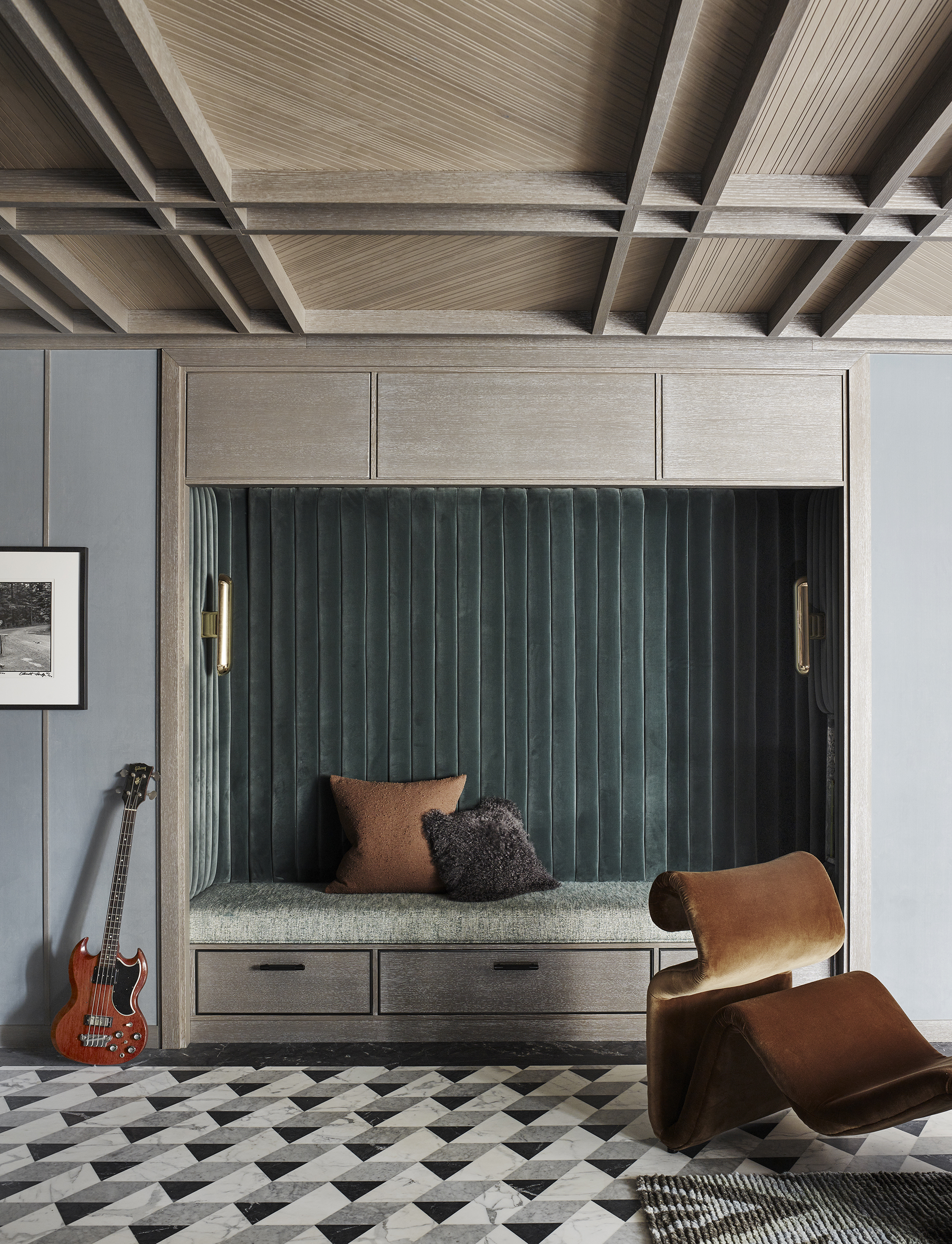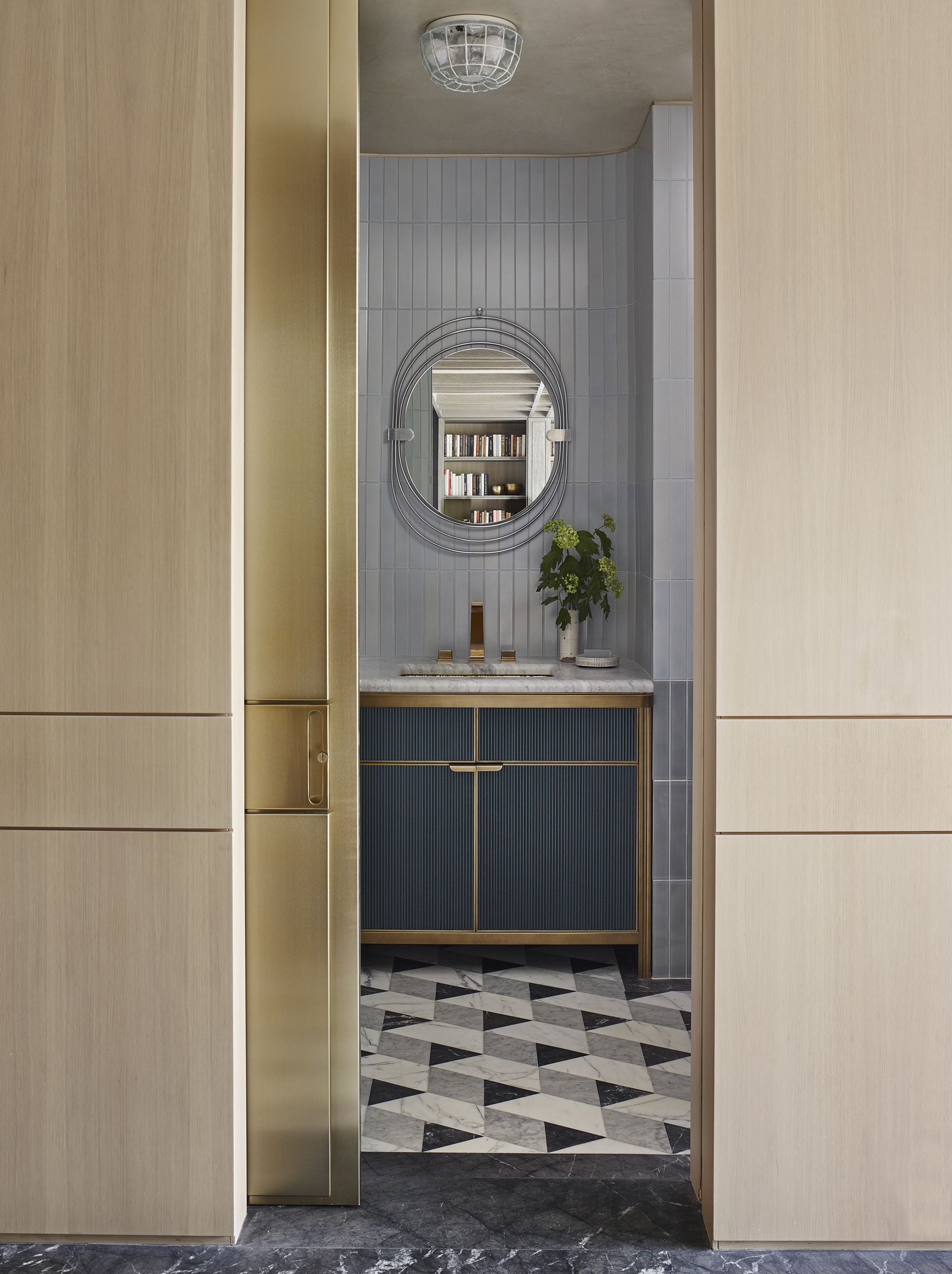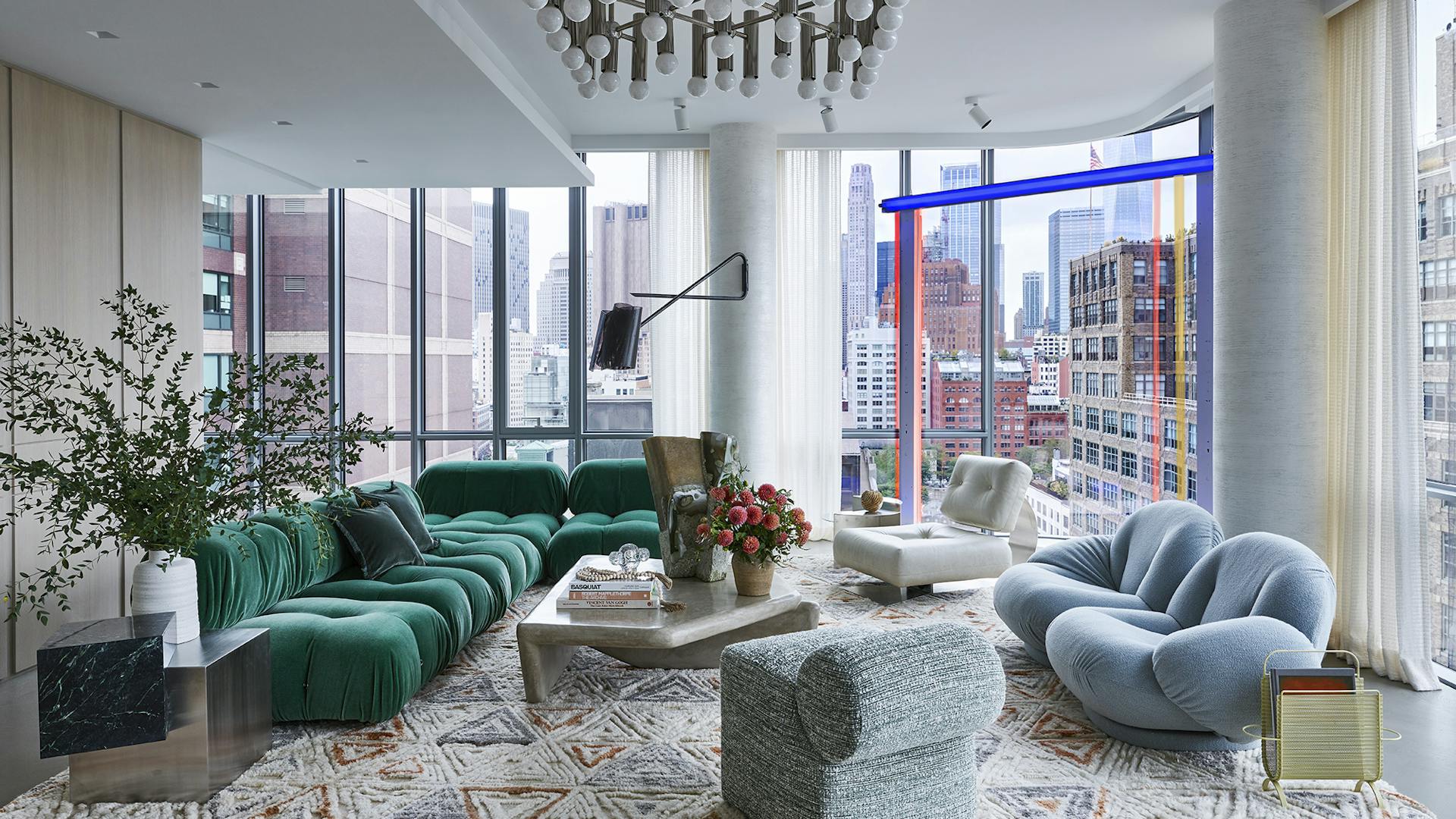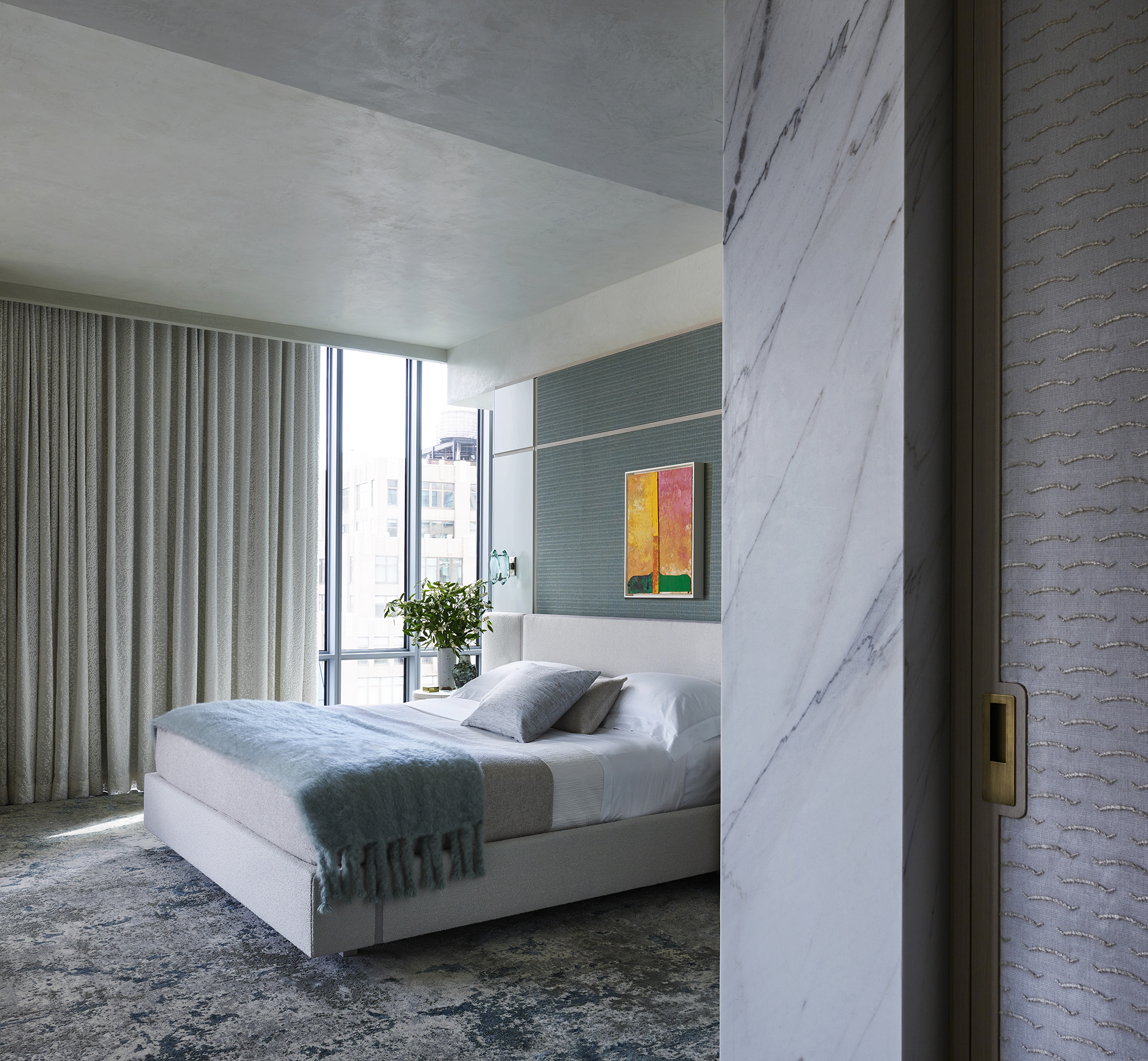 Nestled boldly within the historic landscape of West Soho at 565 Broome, GRADE took on the interior design and decoration of this 4,600 SF luxury condominium—featured in Architectural Digest—inside the sleek, glass jewel-like structure designed by Renzo Piano. GRADE envisioned a thoughtful organization of spaces to create a sense of comfort and luxury while setting the stage for a ’70s-cool, eclectic take on decoration. Modern, patterned stone floors and wall paneling evoke the feeling of a salon where the furniture and decoration will feature delicately blended palettes from warm and vibrant to light and cool with intricate elements to infuse the living spaces with personality. A curated art collection completes the vision with works by Rudolf Polanszky, Brent Wadden and Dan Flavin, bringing this home to life.