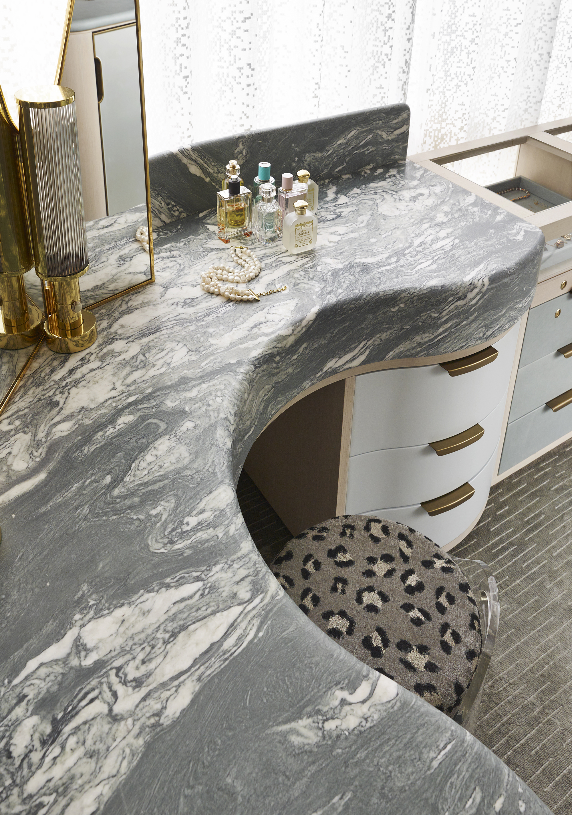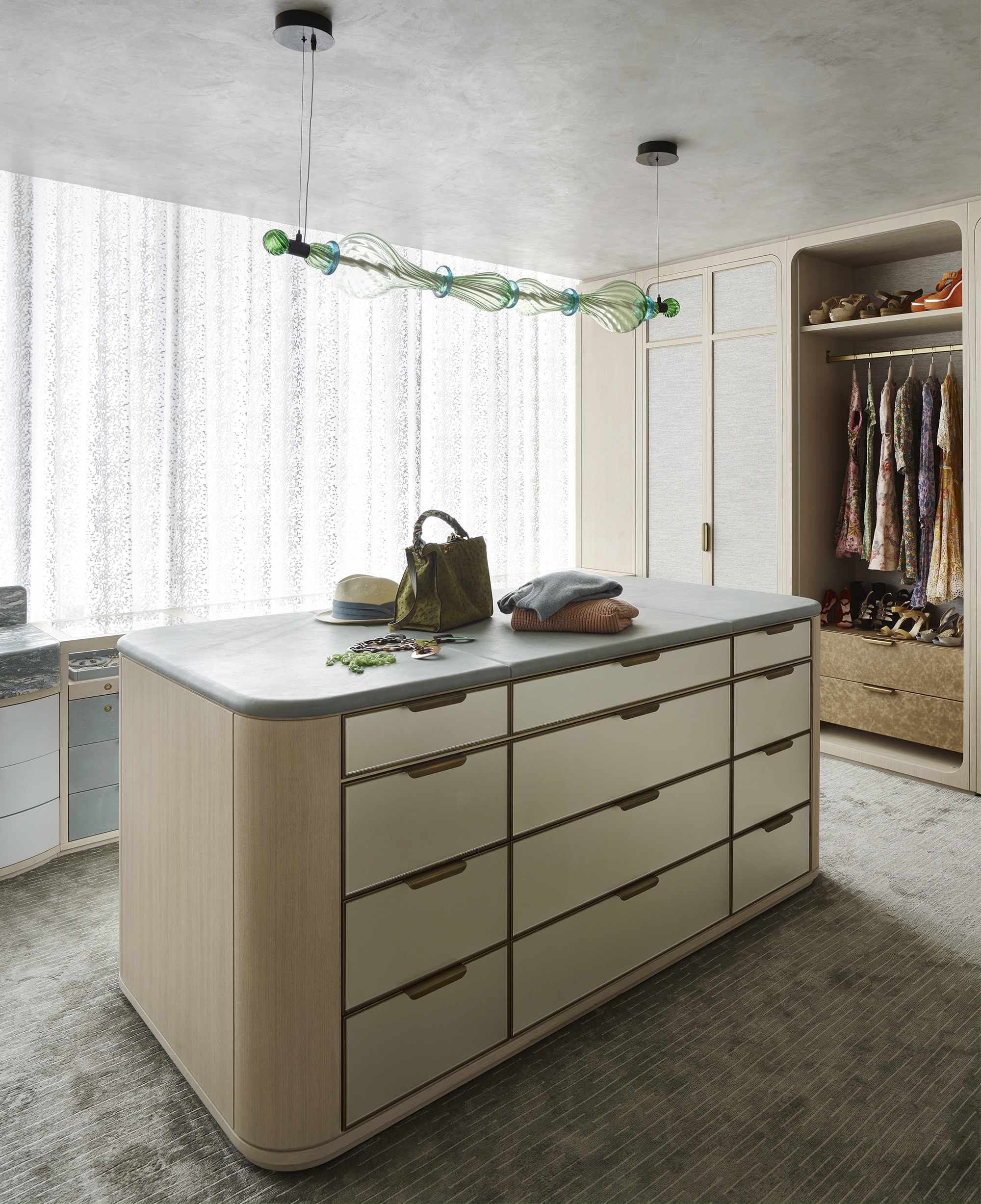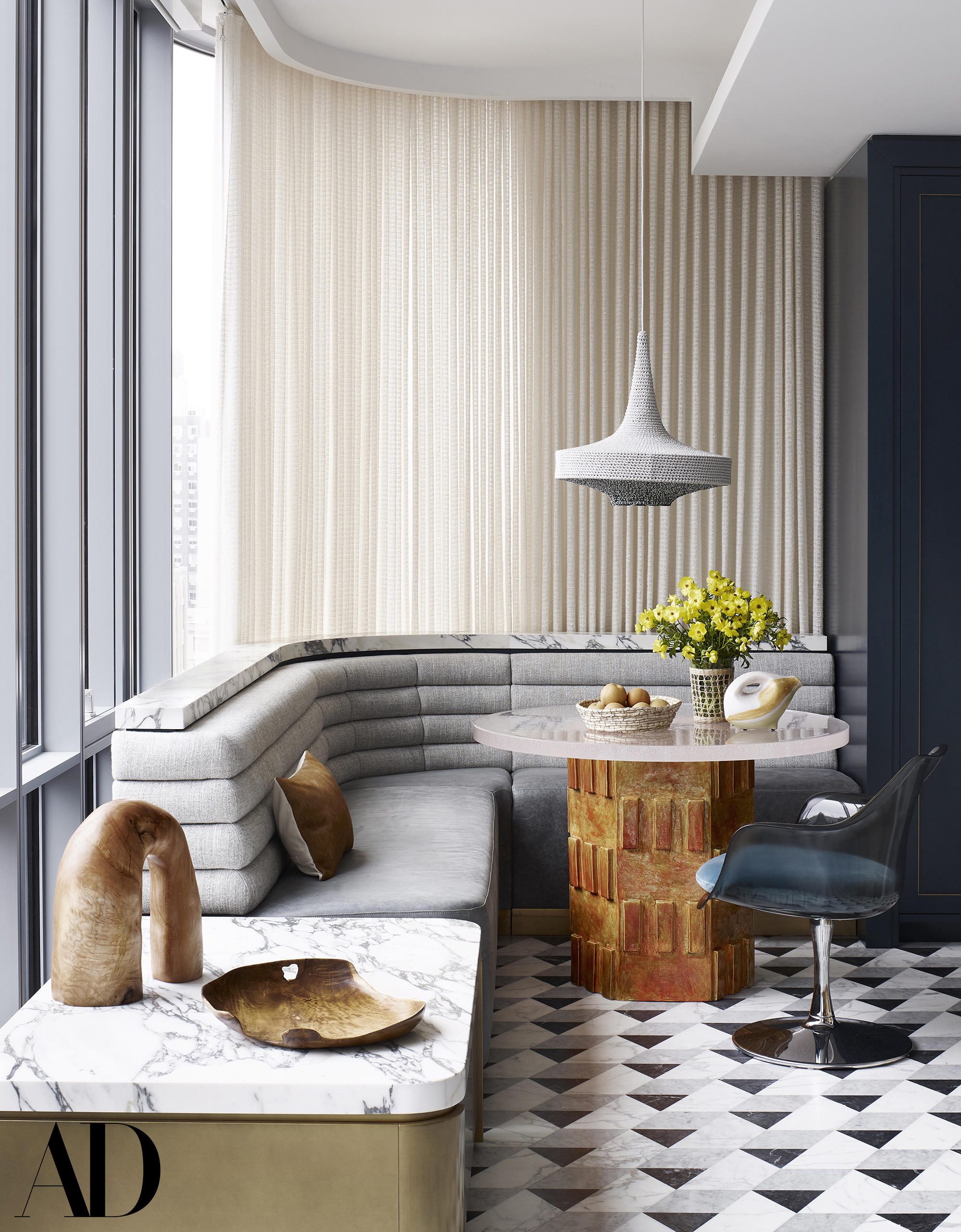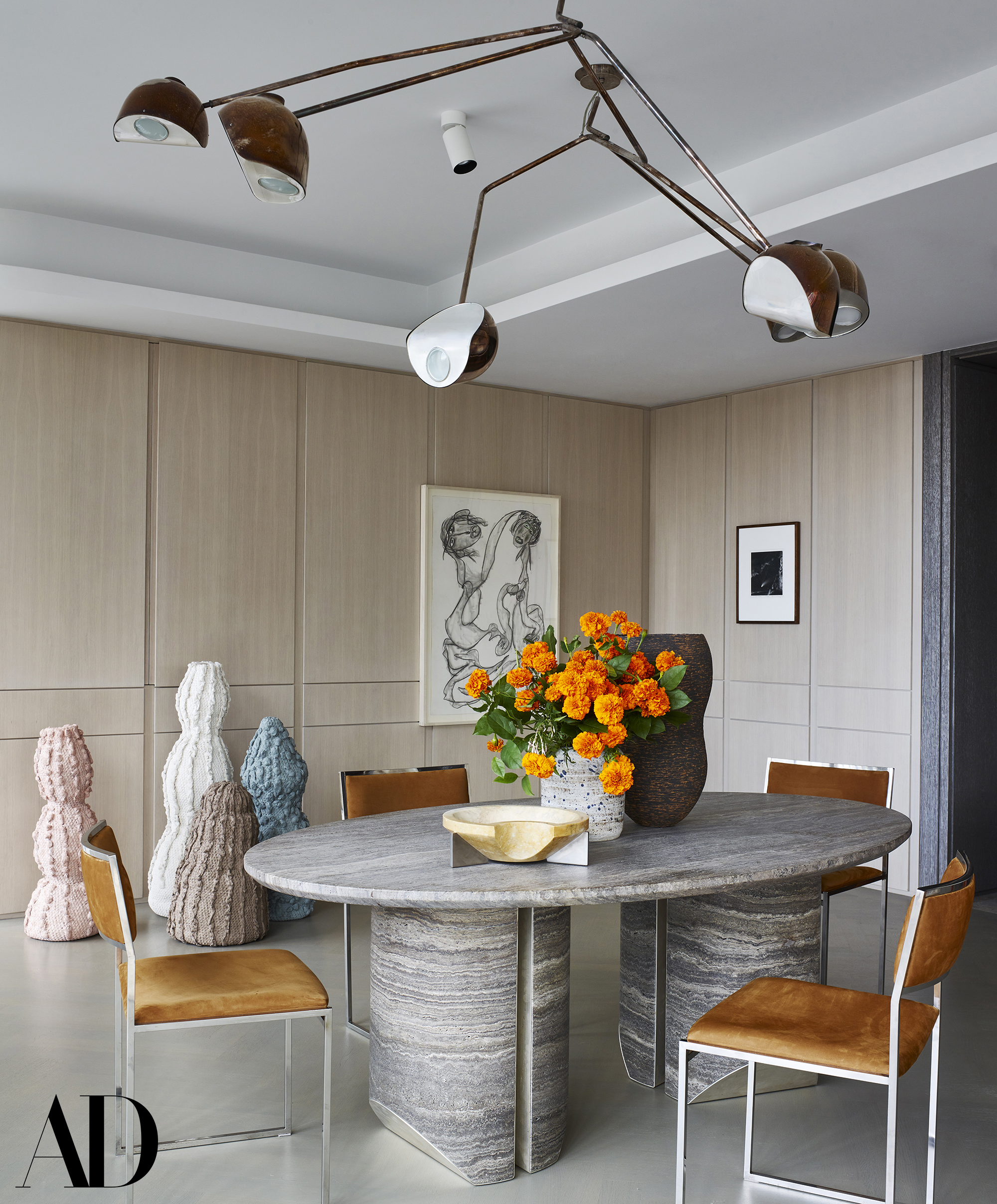 Nestled boldly within the historic landscape of West Soho at 565 Broome, GRADE took on the interior design and decoration of this 4,600 SF luxury condominium—featured in Architectural Digest—inside the sleek, glass jewel-like structure designed by Renzo Piano. GRADE envisioned a thoughtful organization of spaces to create a sense of comfort and luxury while setting the stage for a ’70s-cool, eclectic take on decoration. Modern, patterned stone floors and wall paneling evoke the feeling of a salon where the furniture and decoration will feature delicately blended palettes from warm and vibrant to light and cool with intricate elements to infuse the living spaces with personality. A curated art collection completes the vision with works by Rudolf Polanszky, Brent Wadden and Dan Flavin, bringing this home to life.