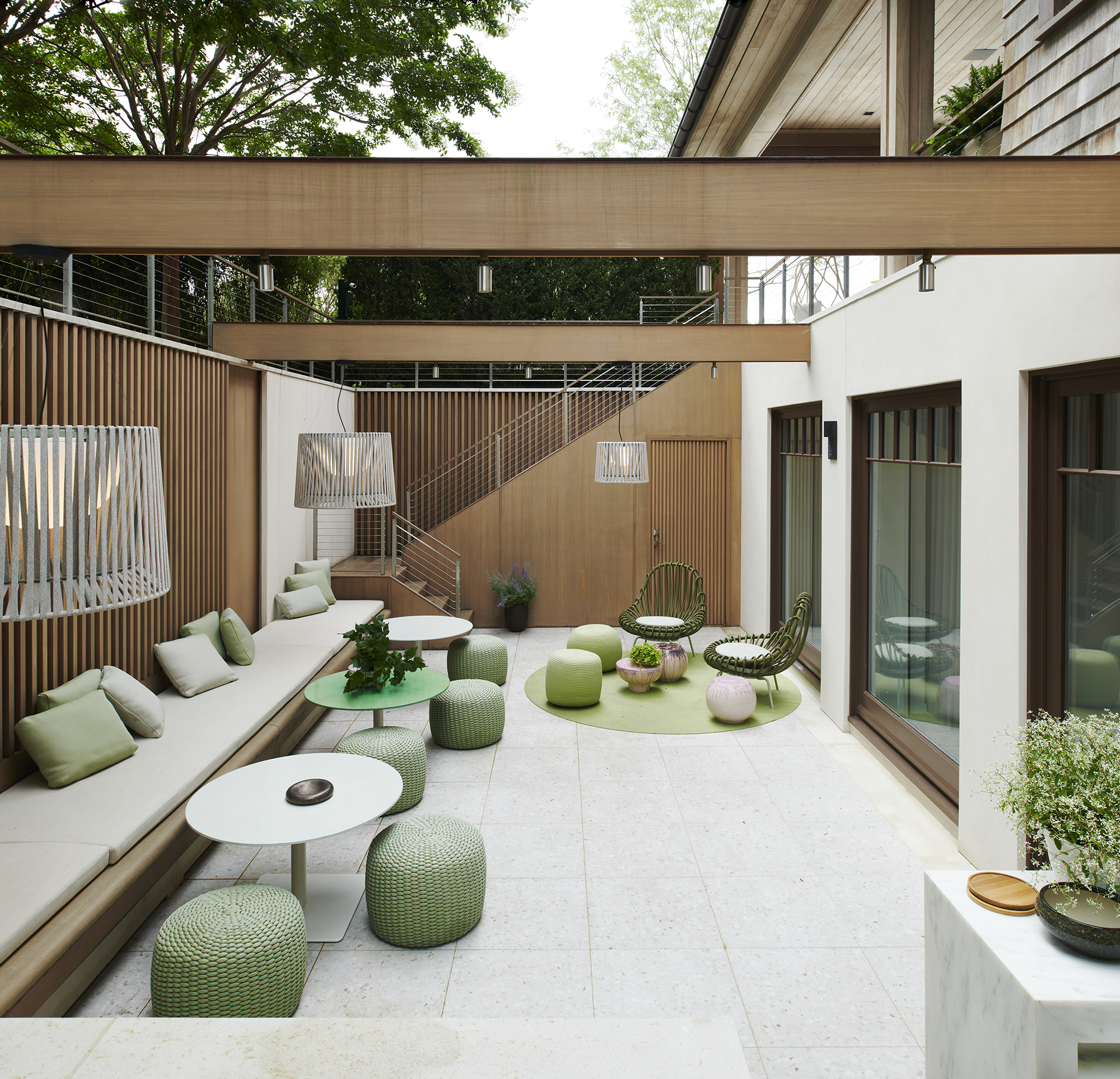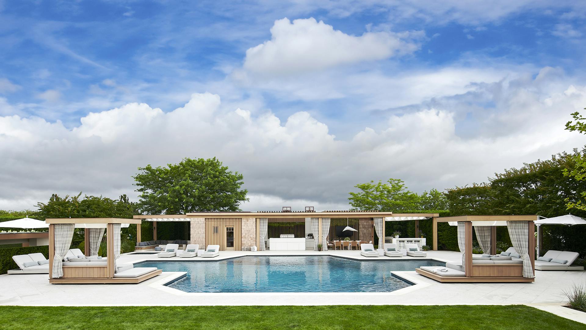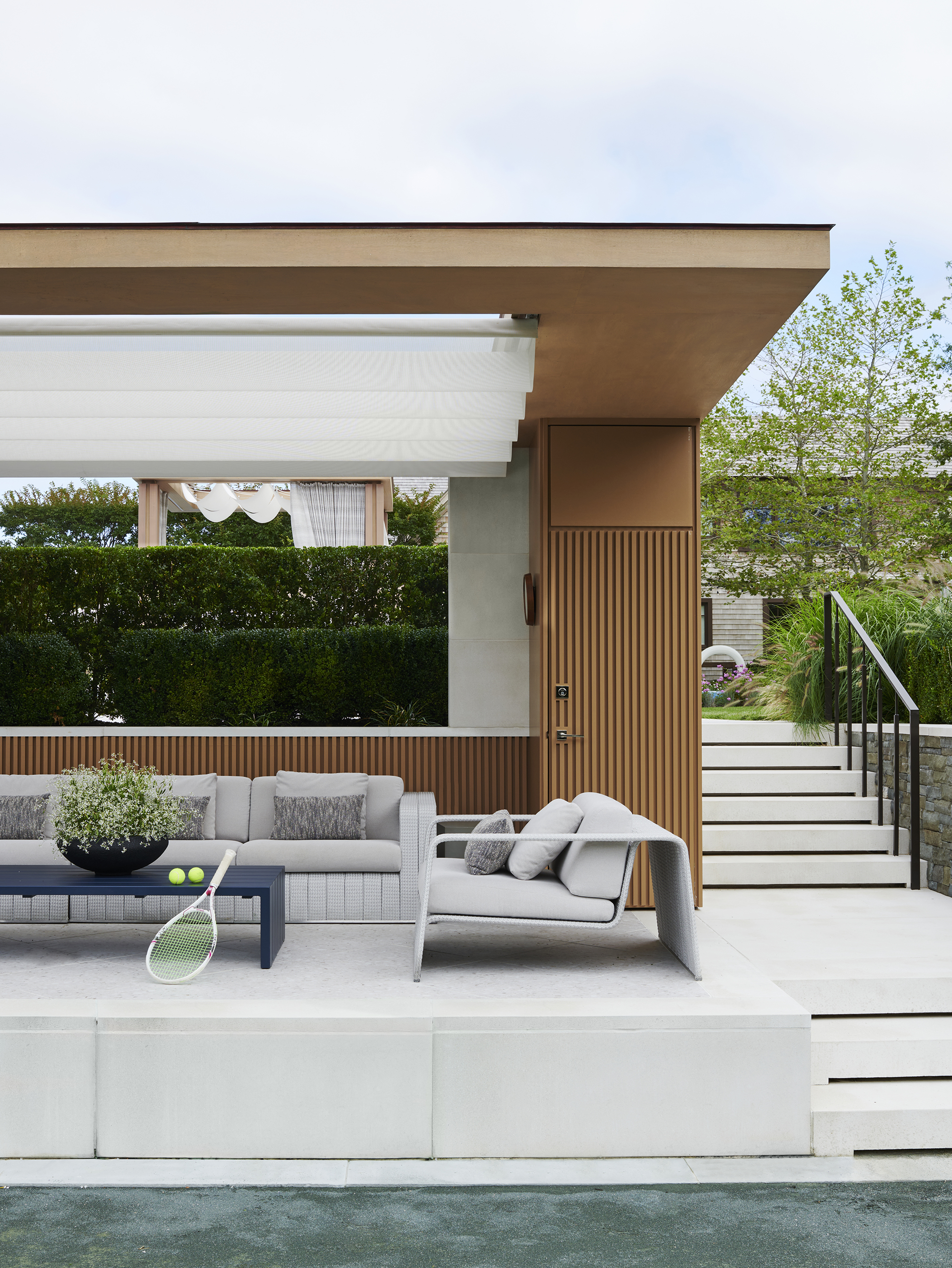 The 3+ acre property and pool house connected to an existing Southampton shingle style estate has been re-envisioned by GRADE with a serene, elevated aesthetic and wellness-inspired program, designed for both quiet family moments and entertaining large social gatherings. Focused on refined, modern finishes, abundant seating and a complete pool house overhaul, the effect will be a zen-inspired lounge meets entertainment experience fit for the stars, replete with a main house patio beautification with newly designed permanent bar areas, pool house interior and exterior updates, expanded outdoor chef’s kitchen, outdoor dining areas, tennis pavilion with cabana lounge and sculpture and wellness gardens with spa-like amenities and integrated landscape design to facilitate and inspire outdoor exercise.