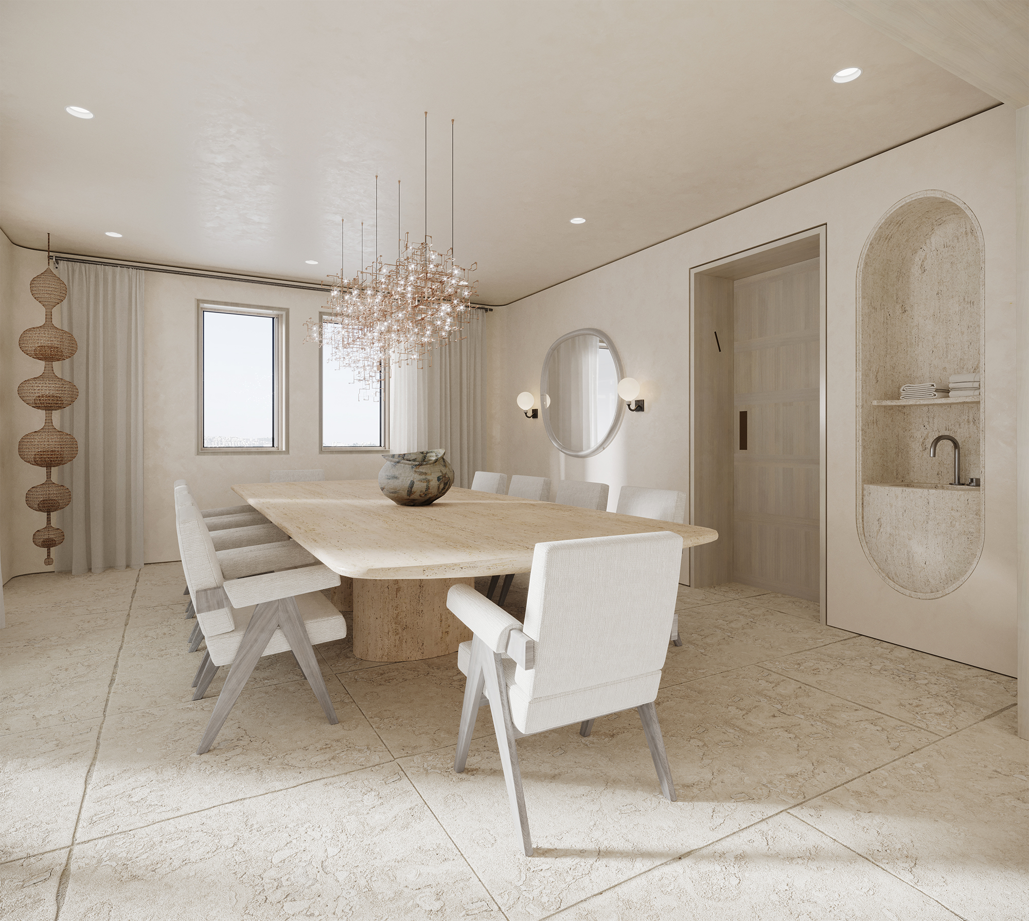 In Jerusalem, the rich culture, history, and spiritual significance of the place are palpable. This can be seen and felt in the warmth and light of the landscape, textures found in its markets and in the architecture of an ancient city which juxtaposes brilliantly with the modern. These contrasts of old and new, will be designed within the home and offer an environment for the family to celebrate their connection and devotion to the culture and their faith. Several apartments on the uppermost floors and roof area of an existing building will be combined to create an 8,600 SF pied-à-terre. A new central stair will connect the spaces spanning two full floors and lead to the roof deck with a pool, gym and outdoor kitchen/dining and lounge area set against a backdrop of city views. Clean lines and stone lined archways will mix with inspired details from the old city, along with smooth and textured stones in a warm neutral palette of bleached oak and soft plasters.
