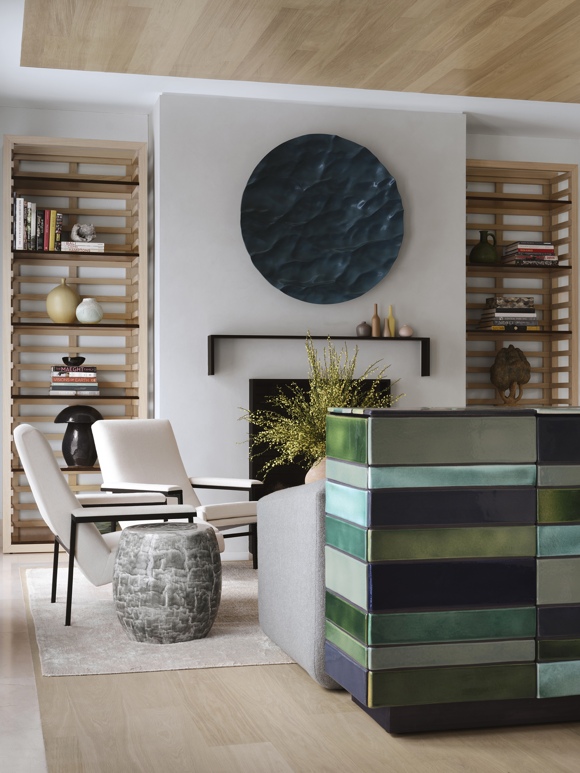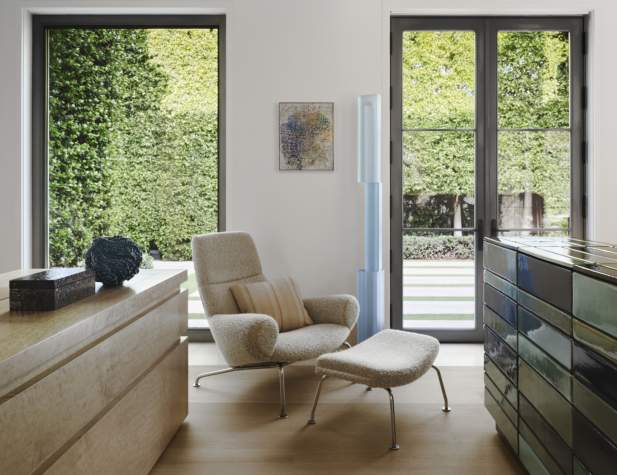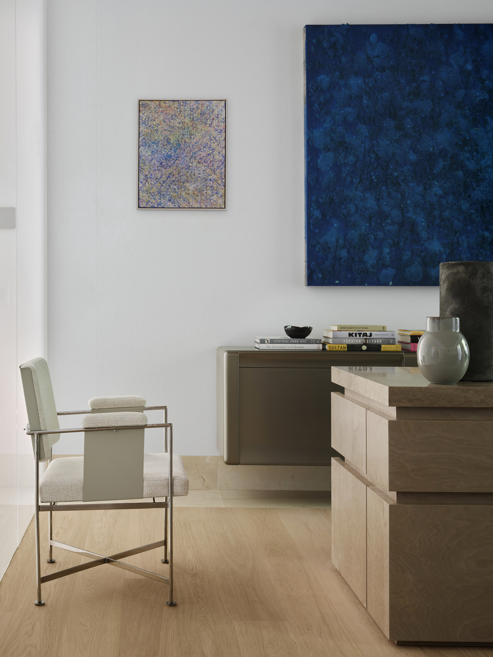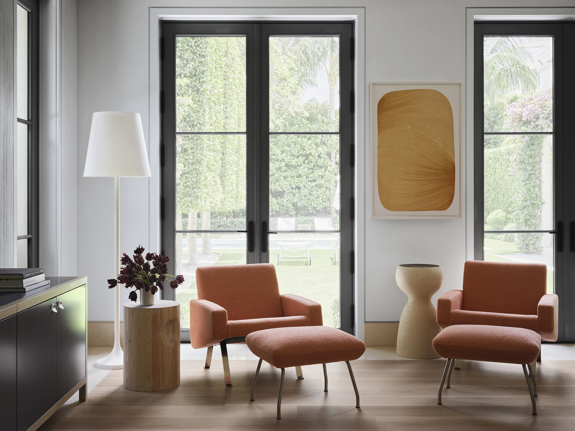 For the Palm Beach House, featured in Galerie Magazine, GRADE created an art-forward, family-friendly home brimming with collectible design and interiors that capture an airy, coastal contemporary vibe. An art collection and a comfortable home were imperative; thus, this 5,100 SF vacation home was designed to support the functional needs of an ever-growing family—with children and grandchildren—as well as lifestyle and aesthetic goals. Sophisticated outdoor living areas were redesigned to accommodate hosting and entertaining the whole family, and a bright environment inside presents new art acquisitions, furniture, and decoration. Custom millwork provides elegant storage for stashing away children’s toys, a new enclosed office in the original formal living room offers a convertible work from home / lounge area, and a new wine bar activates the home’s cross-axis—now a gallery. Walls were refreshed with Venetian plaster throughout, offering a pristine setting for works of art. Stylish seating anchors spaces with a calm but sophisticated base while the more playful, organic pieces in unique materials and finishes elevate interest. Light, beach-inspired neutrals mix with blue, orange, and coral tones to tap into the coastal context of Palm Beach.