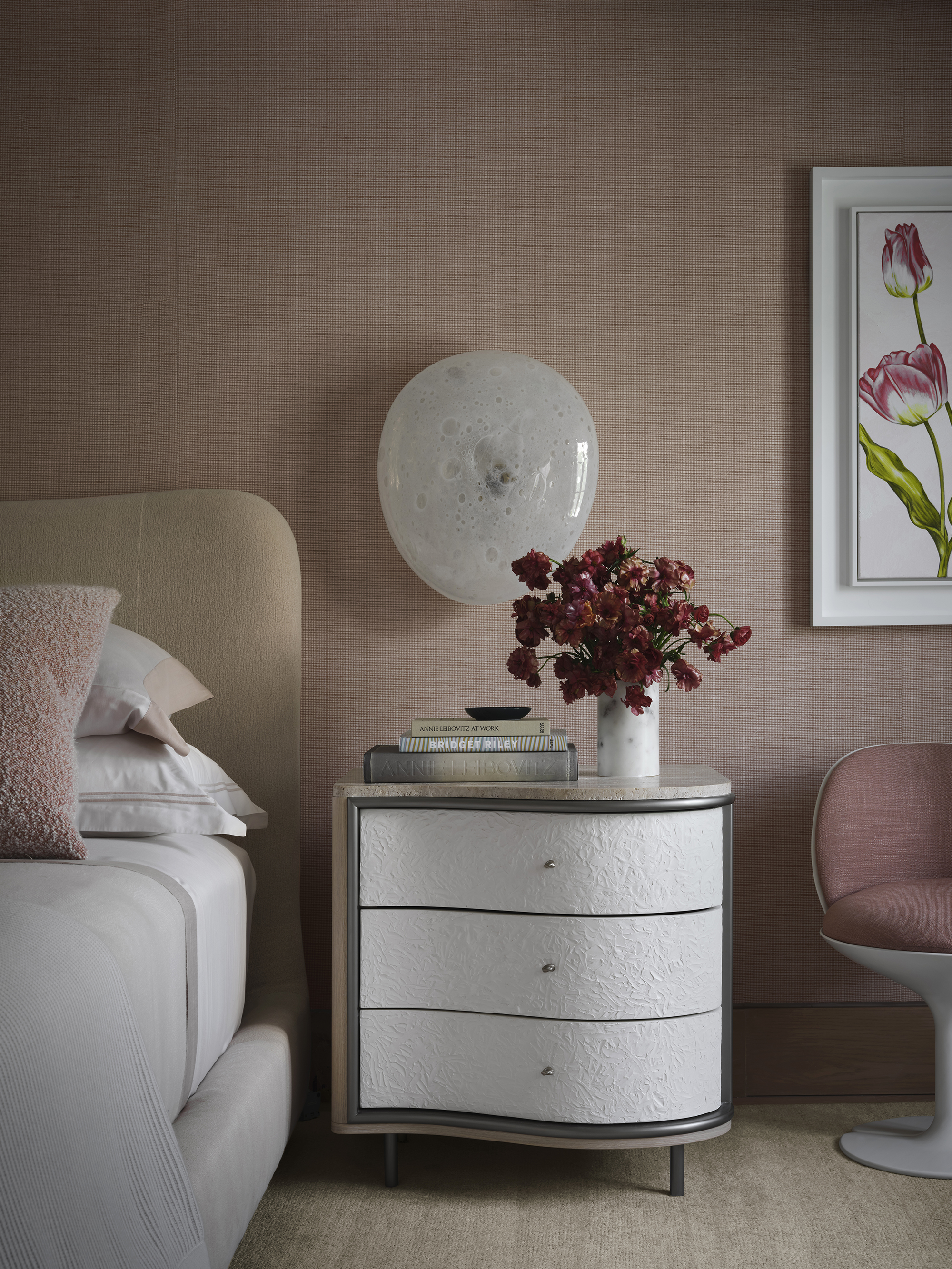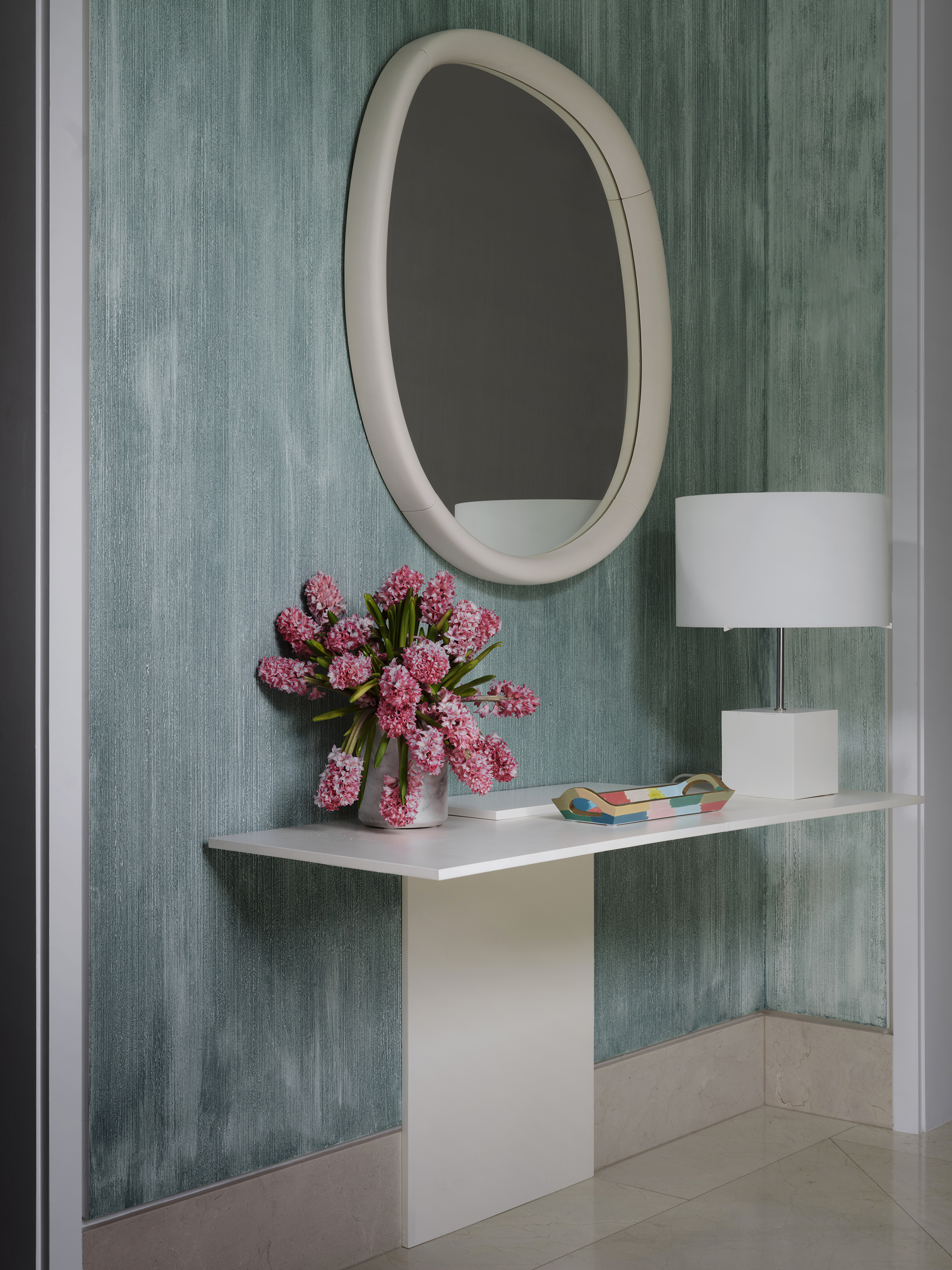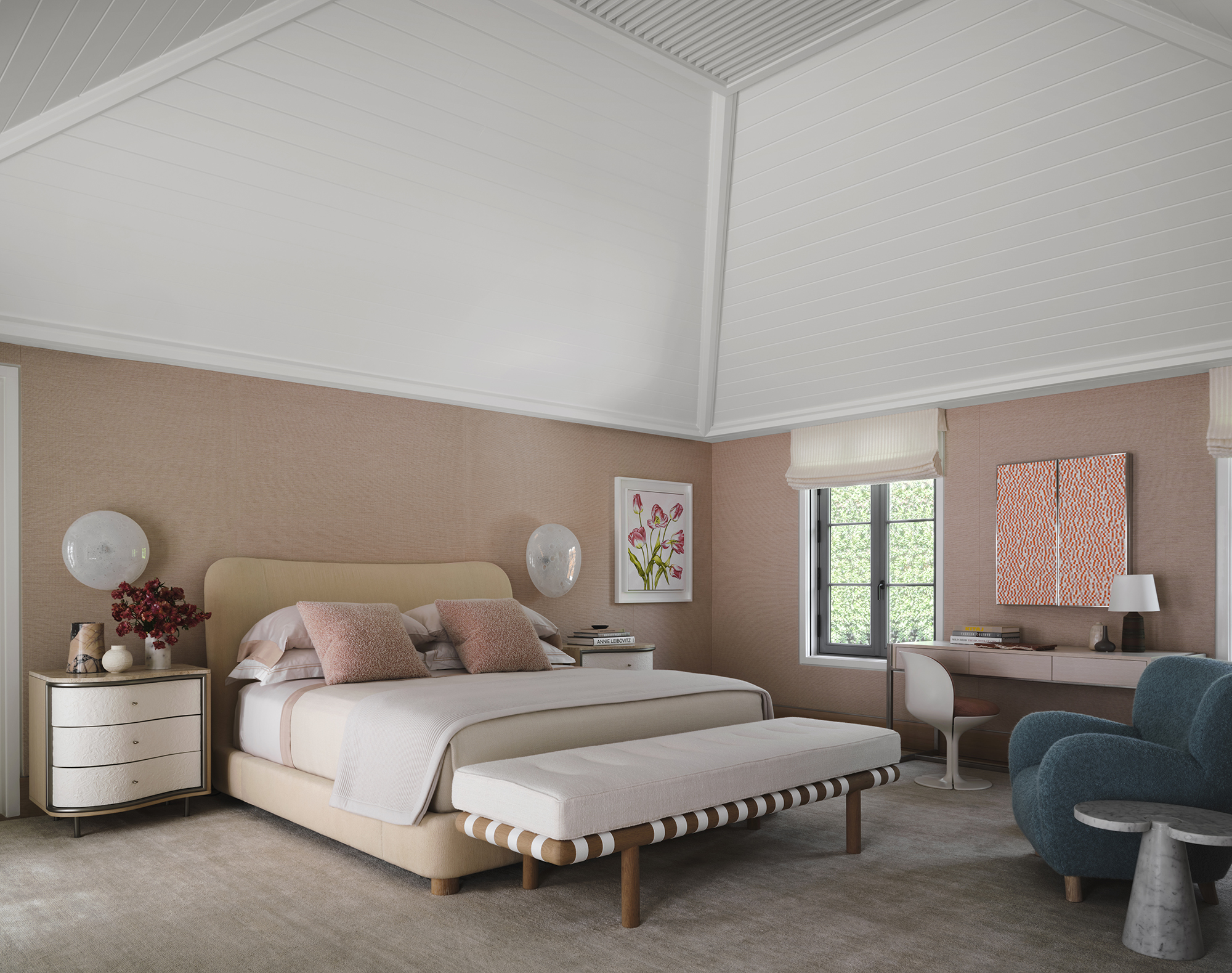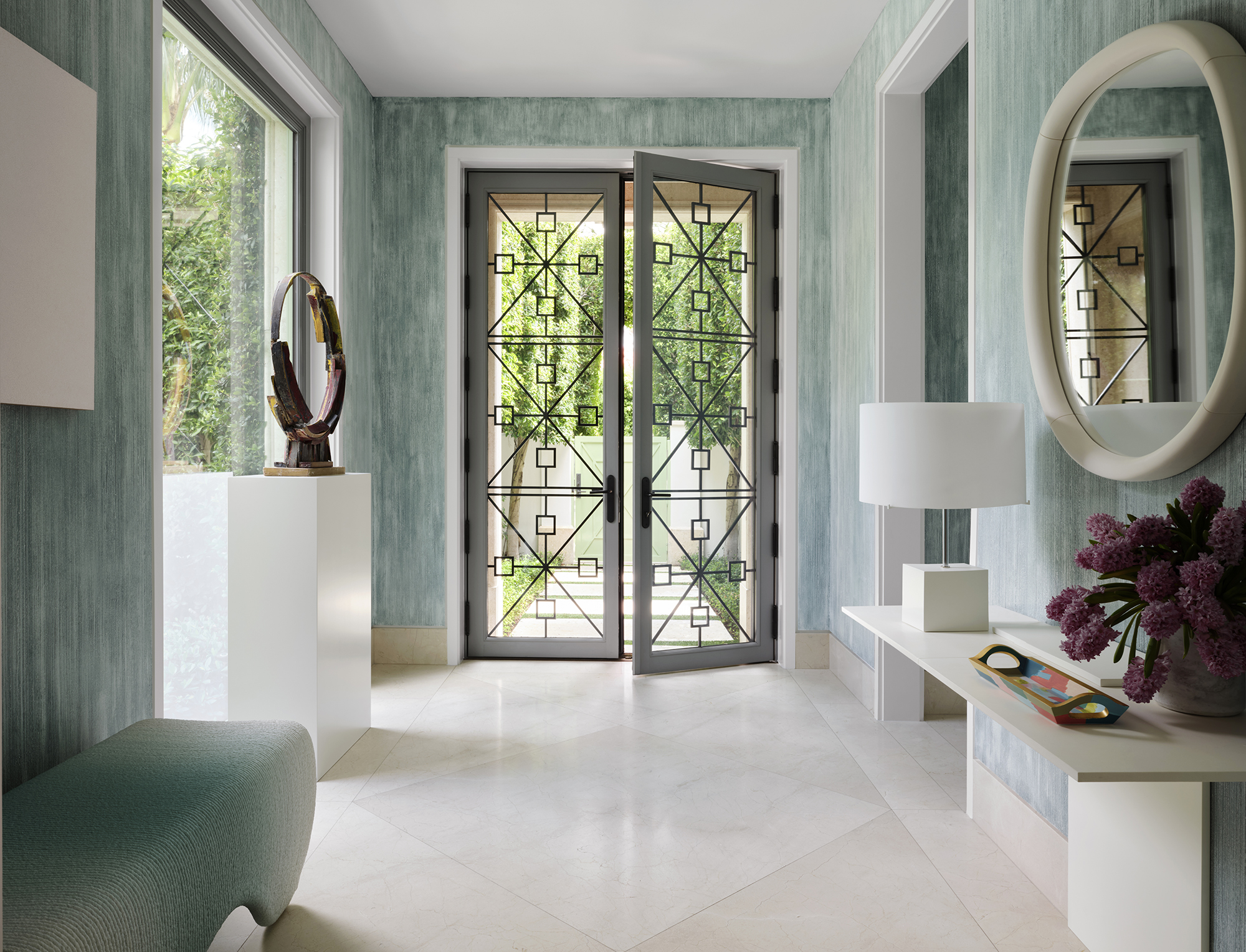 For the Palm Beach House, featured in Galerie Magazine, GRADE created an art-forward, family-friendly home brimming with collectible design and interiors that capture an airy, coastal contemporary vibe. An art collection and a comfortable home were imperative; thus, this 5,100 SF vacation home was designed to support the functional needs of an ever-growing family—with children and grandchildren—as well as lifestyle and aesthetic goals. Sophisticated outdoor living areas were redesigned to accommodate hosting and entertaining the whole family, and a bright environment inside presents new art acquisitions, furniture, and decoration. Custom millwork provides elegant storage for stashing away children’s toys, a new enclosed office in the original formal living room offers a convertible work from home / lounge area, and a new wine bar activates the home’s cross-axis—now a gallery. Walls were refreshed with Venetian plaster throughout, offering a pristine setting for works of art. Stylish seating anchors spaces with a calm but sophisticated base while the more playful, organic pieces in unique materials and finishes elevate interest. Light, beach-inspired neutrals mix with blue, orange, and coral tones to tap into the coastal context of Palm Beach.