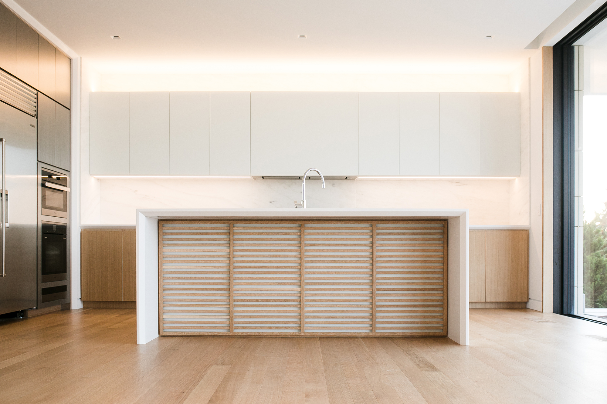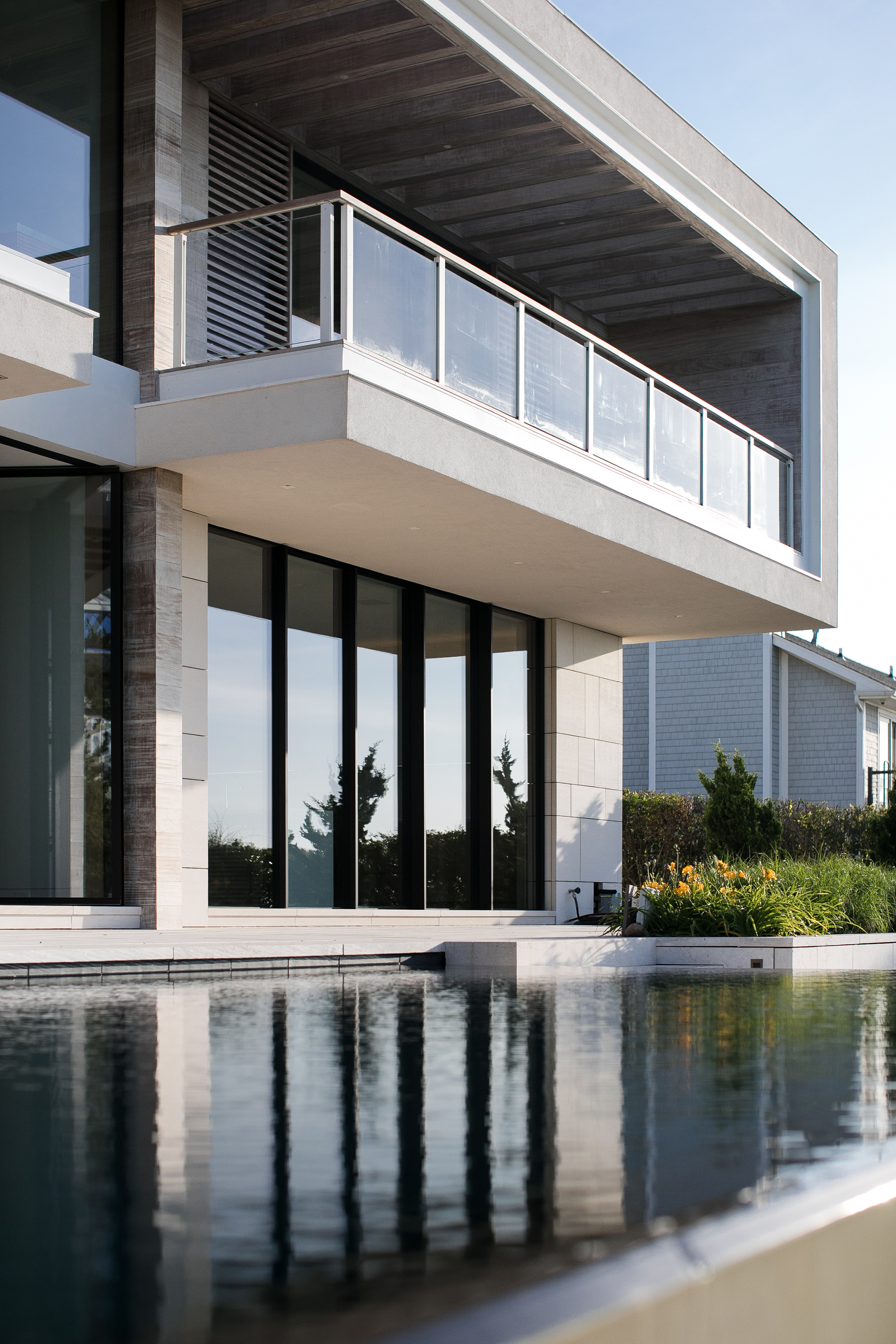 GRADE’s focus for the architecture and interior design of the 6,000 SF Potato Road House was to design a strikingly modern waterfront home blending interior spaces with the outdoors while seamlessly harnessing its endless ocean views. Given this home’s deep connection to the water, a neutral palette of natural fabrics and materials was selected to complement the vast blue ocean waters and create a calm, luxurious living space. Linear planes and multi-level platforms create separate living and dining spaces to give depth while never compromising the infinite presence of the horizon.