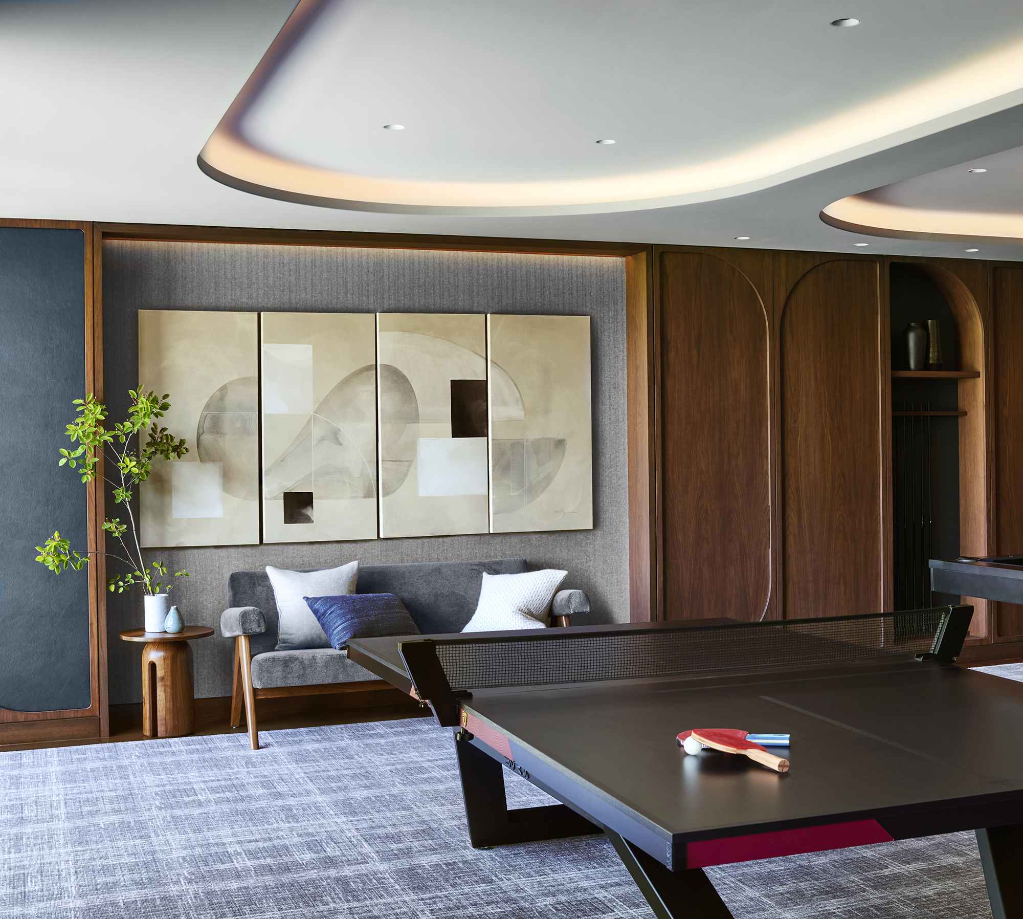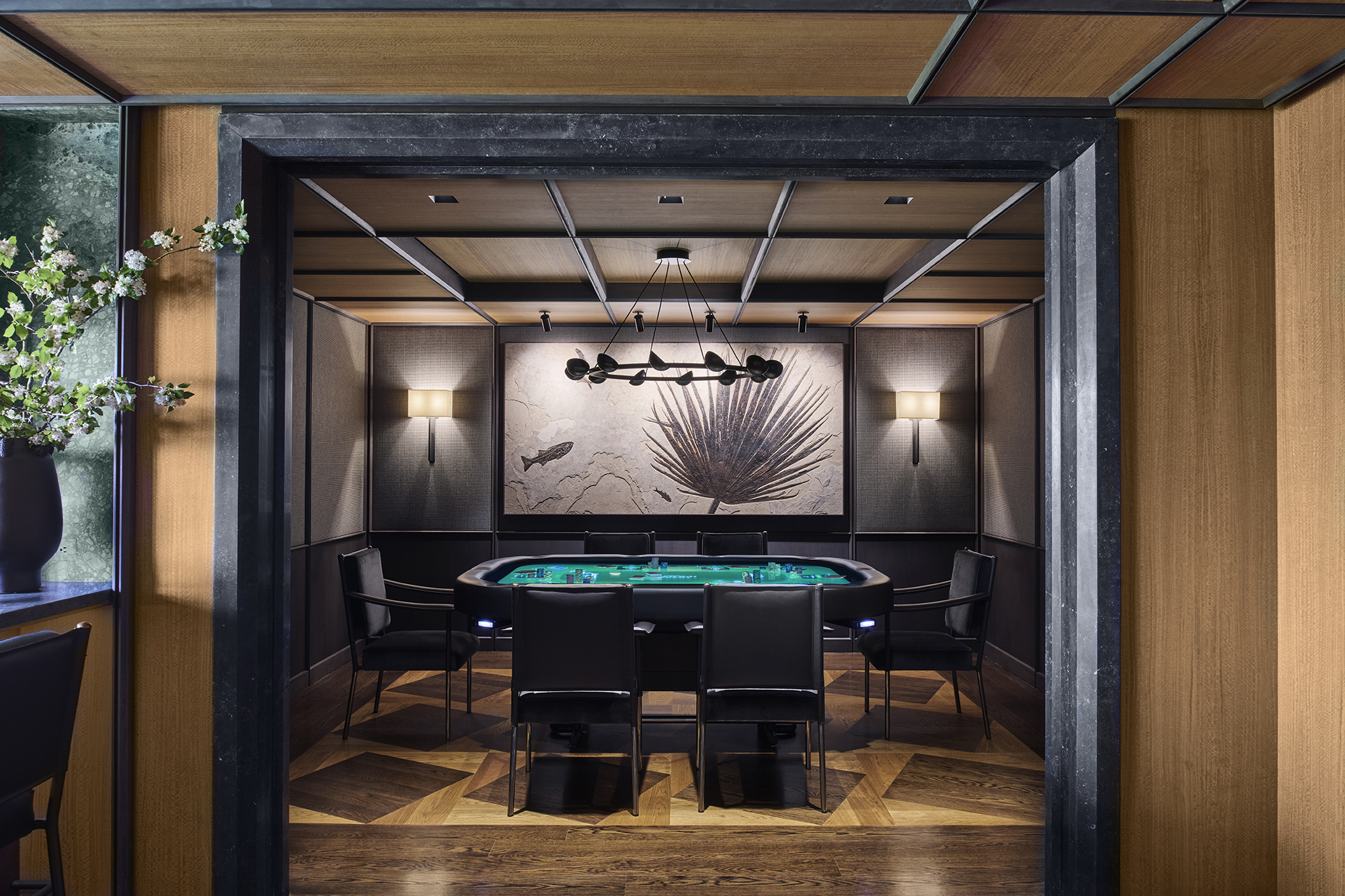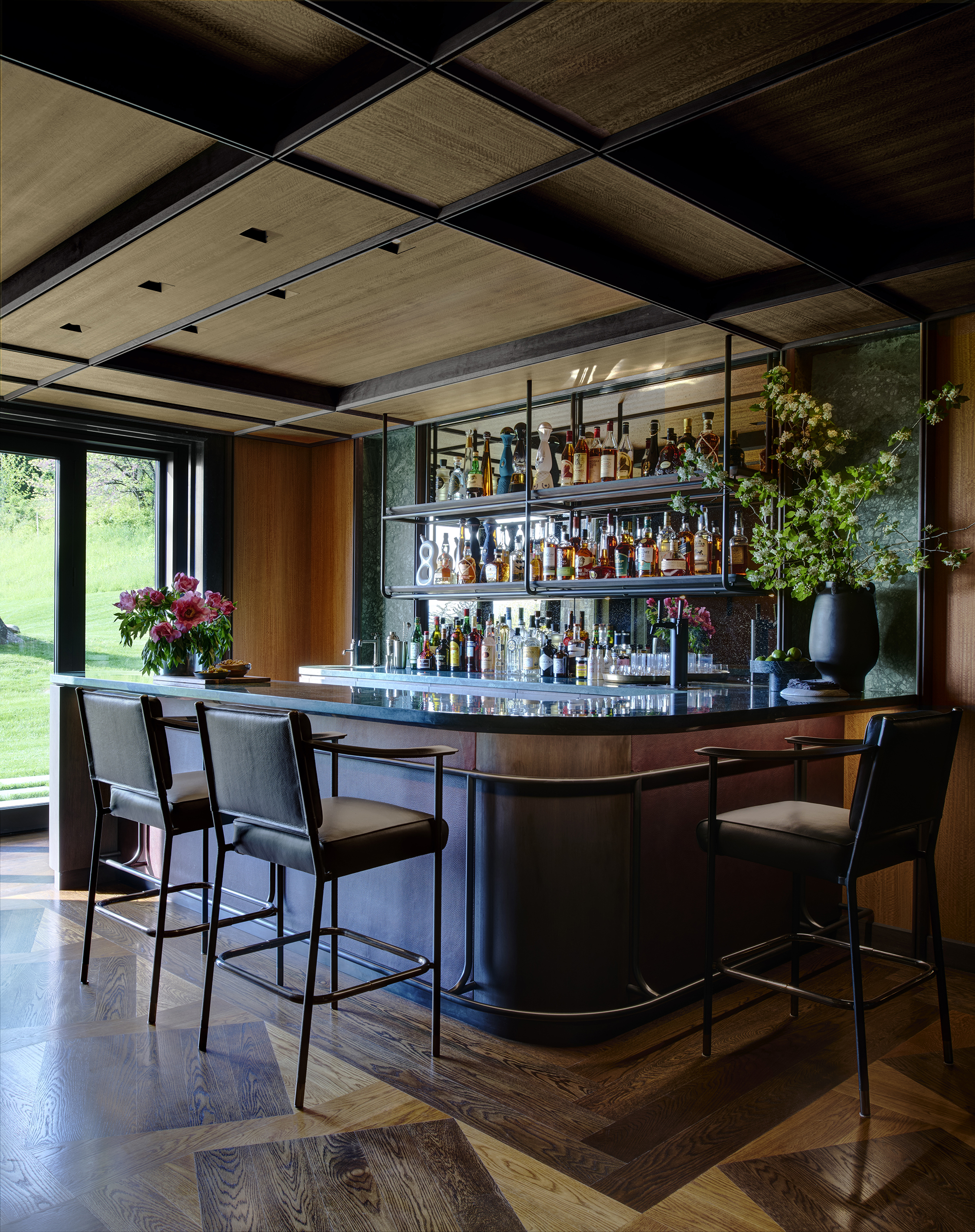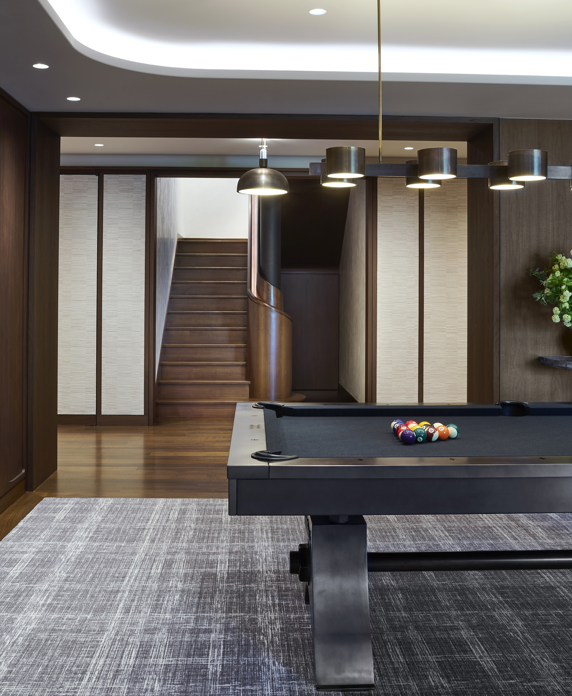 Our Westchester Estate is a newly constructed house designed in the spirit and grandeur of turn-of-the-century Hudson River mansions, while transcending notions of the “traditional” residence through its highly personalized interior design and programming. The handsome, stone-clad exterior remains, with select architectural modifications to expand the lower level and interiors of a stately, modernized classic aesthetic. The lower level has been transformed into a series of social, wellness and entertainment spaces, featuring a luxurious fitness area and spa with sophisticated leather and wood details, a hidden, speakeasy-style bar, and poker room. Additional educational programming within the west wing includes an expanded theater and lecture hall for multidisciplinary, intellectual talks and social interaction. As a secondary home, this residence reflects our client’s personal tastes and interests as well as those of his children while allowing each room to stand out as its own unique place and experience. Layered details, tones and textured materials are warm and inviting, and express a continuity of the architecture among a collection of rooms, public and private, intended as both family retreat and an institute for colleagues and peers.