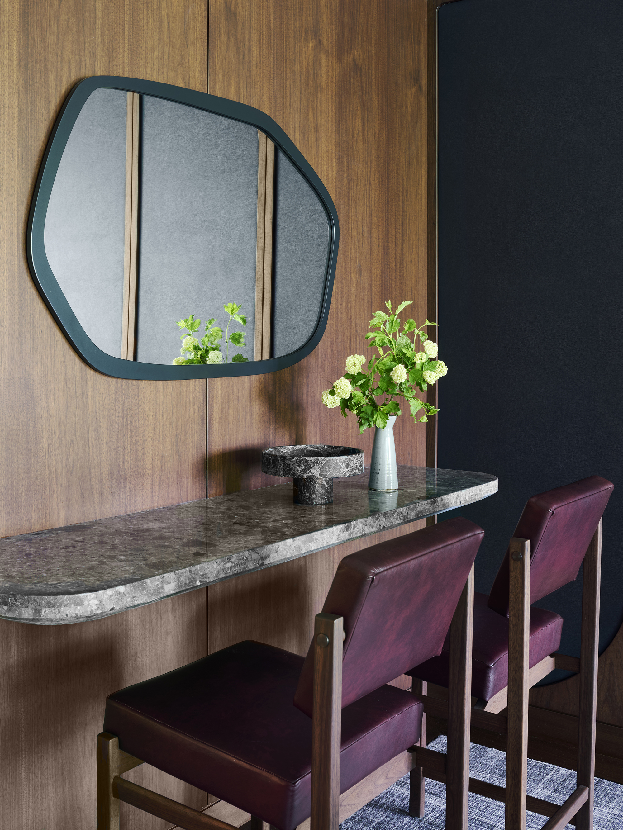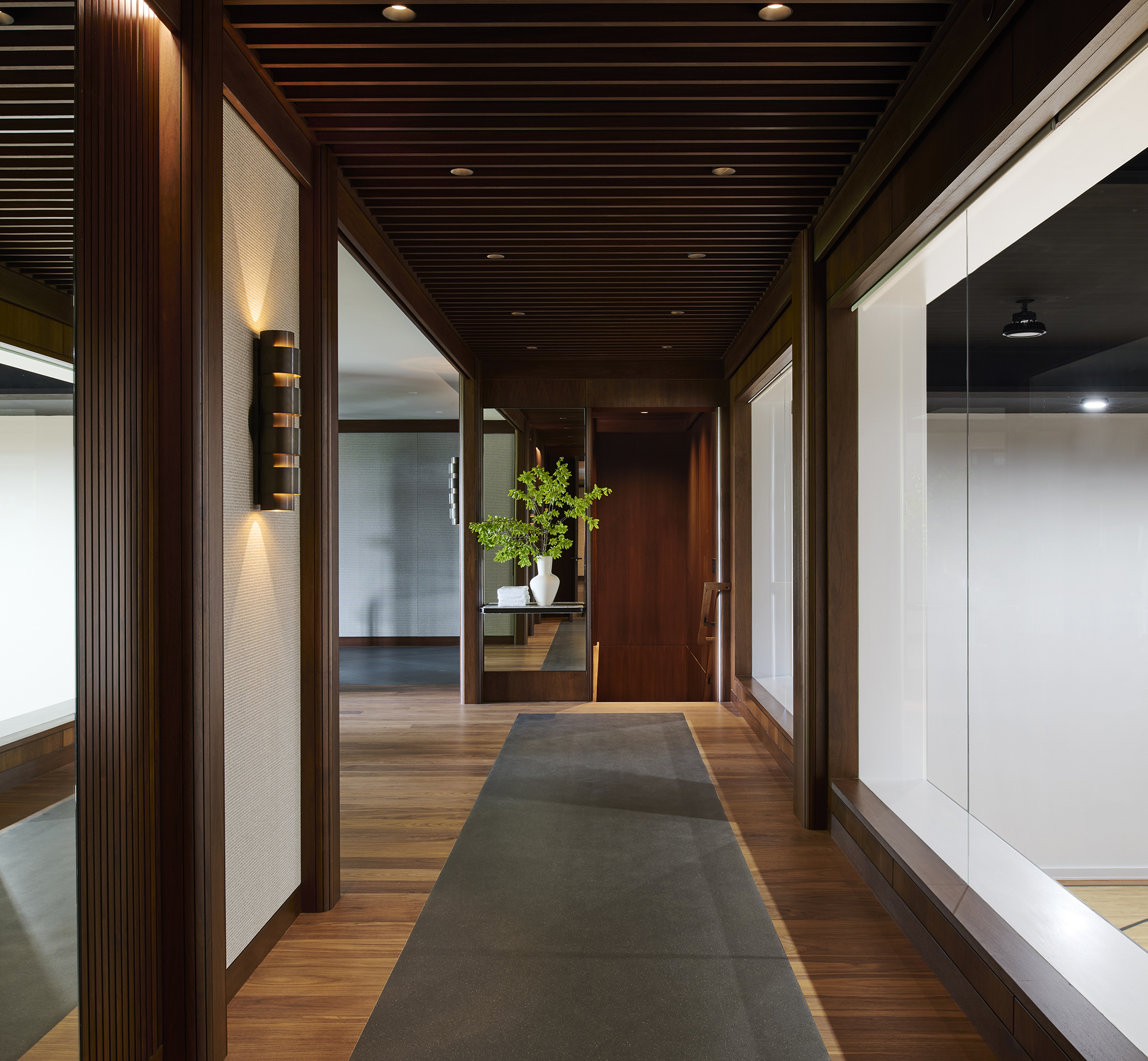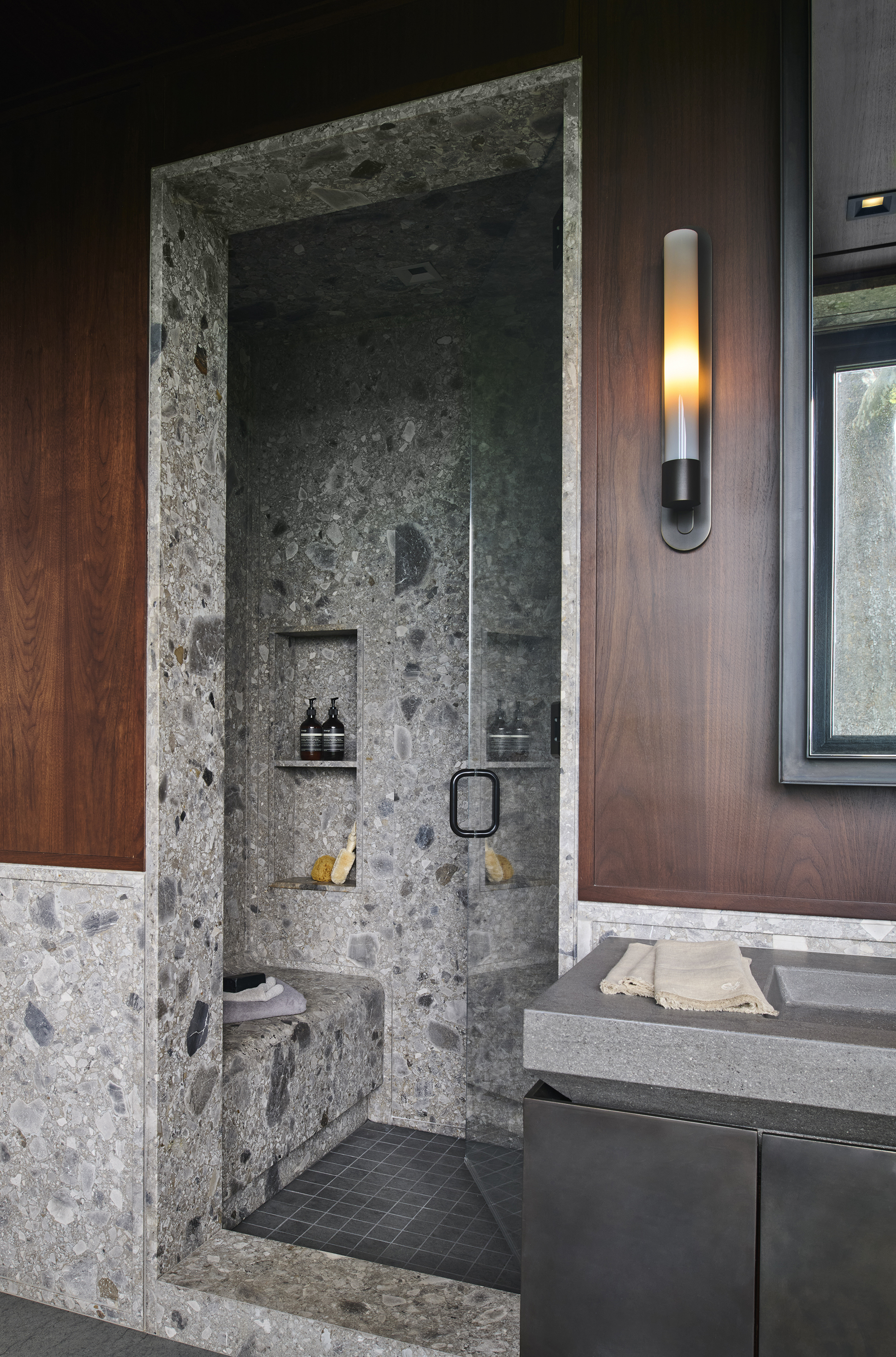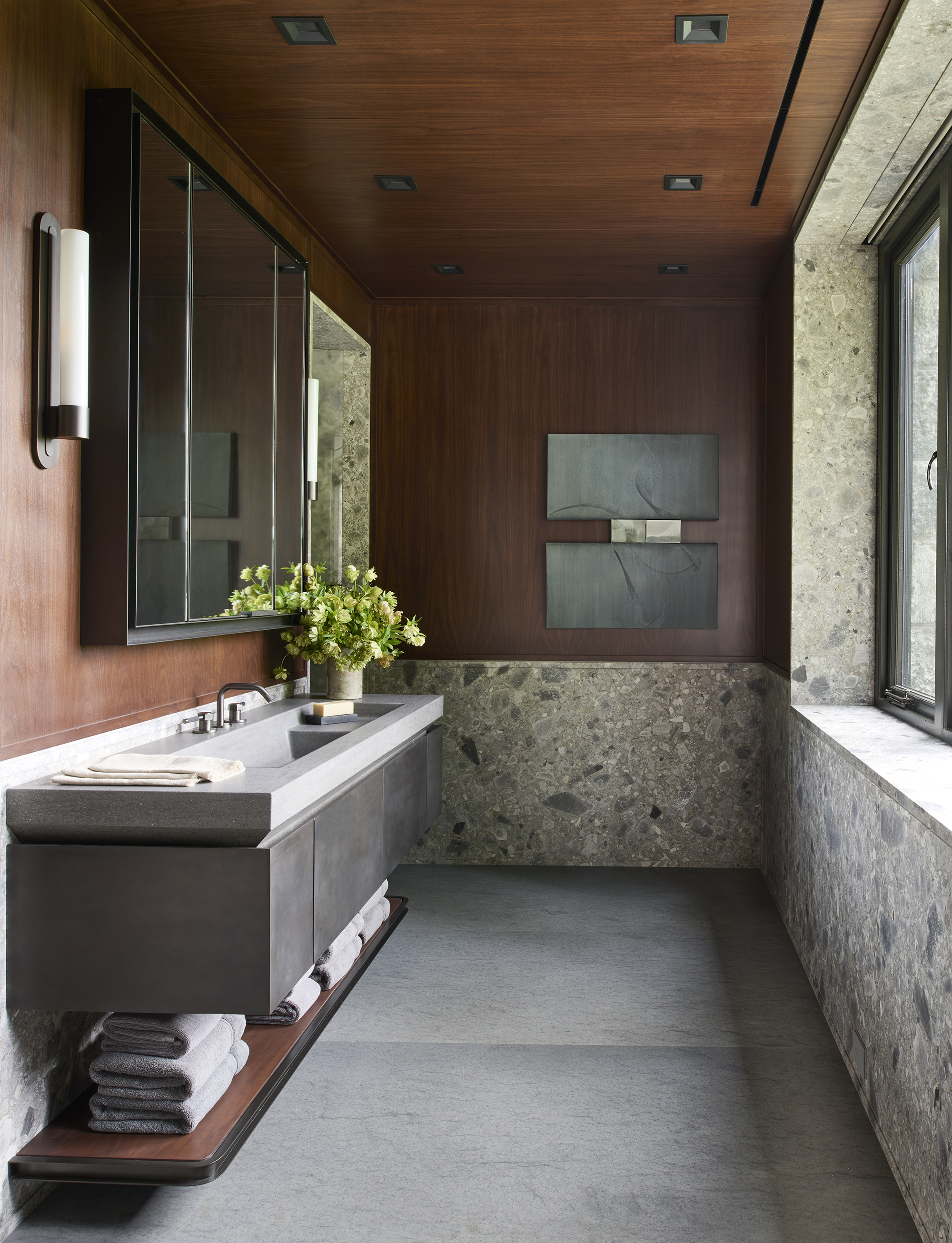 Our Westchester Estate is a newly constructed house designed in the spirit and grandeur of turn-of-the-century Hudson River mansions, while transcending notions of the “traditional” residence through its highly personalized interior design and programming. The handsome, stone-clad exterior remains, with select architectural modifications to expand the lower level and interiors of a stately, modernized classic aesthetic. The lower level has been transformed into a series of social, wellness and entertainment spaces, featuring a luxurious fitness area and spa with sophisticated leather and wood details, a hidden, speakeasy-style bar, and poker room. Additional educational programming within the west wing includes an expanded theater and lecture hall for multidisciplinary, intellectual talks and social interaction. As a secondary home, this residence reflects our client’s personal tastes and interests as well as those of his children while allowing each room to stand out as its own unique place and experience. Layered details, tones and textured materials are warm and inviting, and express a continuity of the architecture among a collection of rooms, public and private, intended as both family retreat and an institute for colleagues and peers.